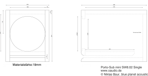 Bei weiteren Recherchen bin ich auf die „Portokassen“ – Subwoofer (Zeitschrift „Klang & Ton“) und dann auf den „PortoSub-Mini“ mit dem Omnes Audio SW6.01 gestoßen, ebenfalls ein 17cm-Subwoofer-Chassis, aber als Bassreflexbox mit deutlich weniger Volumen (7.5l) zu realisieren („Klang & Ton 03/2015 – Seite 38/39), ein Entwurf von blue planet acoustic.